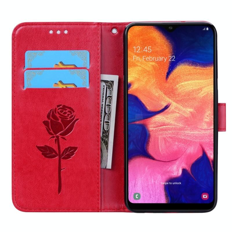 Rose Embossed Horizontal Flip PU Leather Case for Galaxy A10, με θήκη για κάρτες & υποδοχές & πορτοφόλι (κόκκινο)