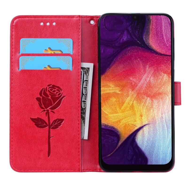 Rose Embossed Horizontal Flip PU Leather Case for Galaxy A50, με θήκη για κάρτες & υποδοχές & πορτοφόλι (Κόκκινο)