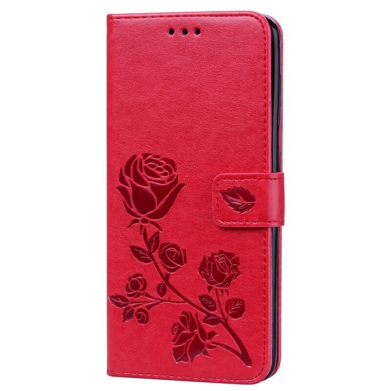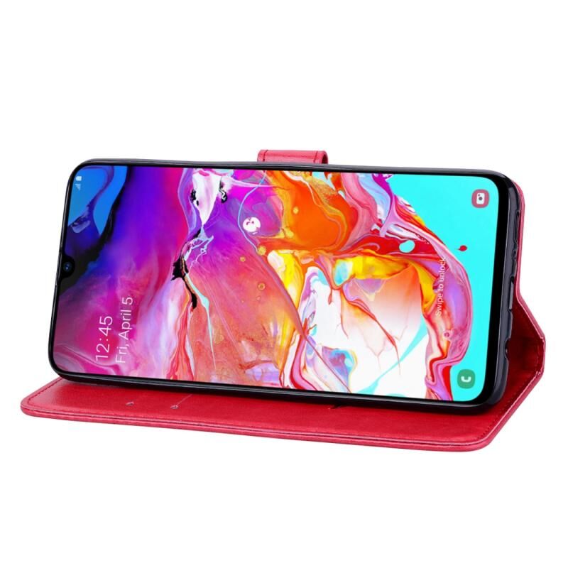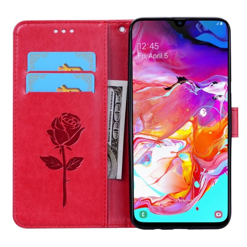 Θήκη Rose Embossed Horizontal Flip από Δερματίνη PU για Galaxy A70, με Θήκη & Θήκες Καρτών & Πορτοφόλι (Κόκκινο)