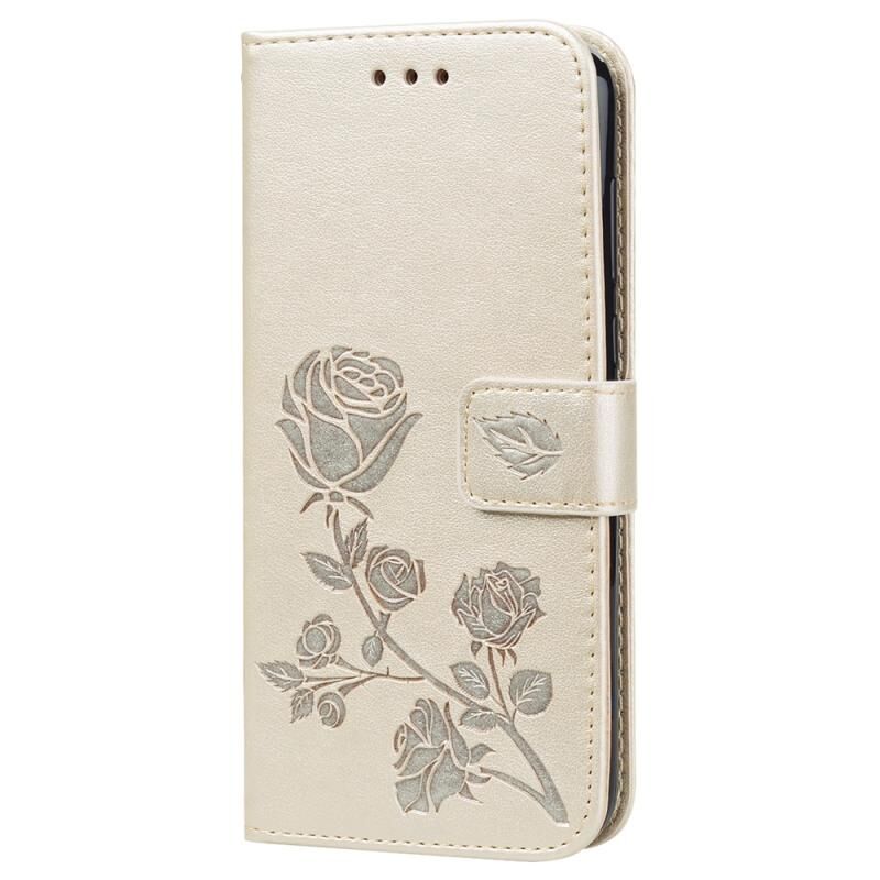 Rose Embossed Horizontal Flip PU Leather Case for Huawei Honor 8S / Y5 (2019), με θήκη & υποδοχές καρτών & πορτοφόλι (χρυσό)