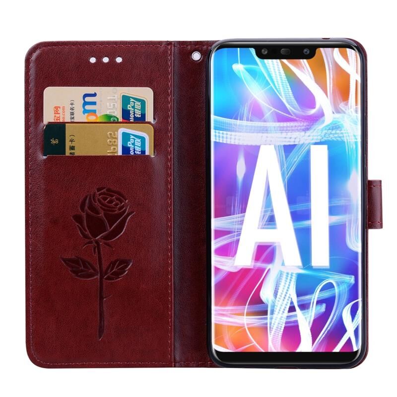 Rose Embossed Horizontal Flip PU Leather Case for Huawei Mate 20 Lite, με θήκη & υποδοχές για κάρτες & πορτοφόλι (καφέ)