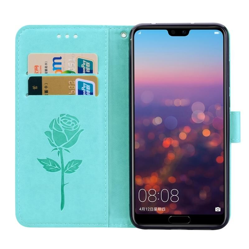 Rose Embossed Horizontal Flip PU Leather Case for Huawei P20 Pro, με θήκη για κάρτες & υποδοχές & πορτοφόλι (Πράσινο)