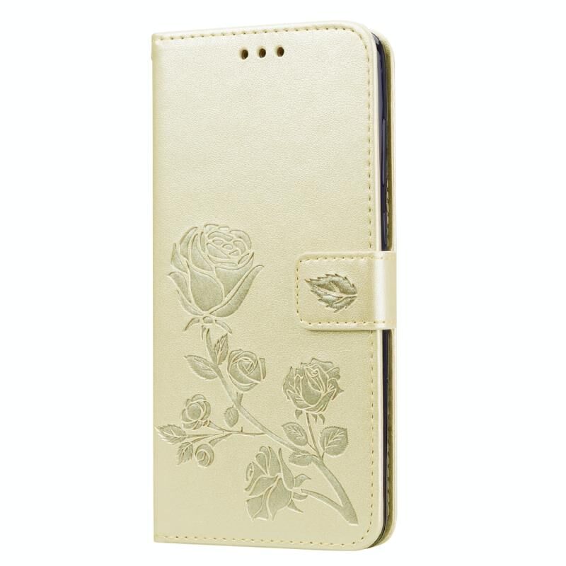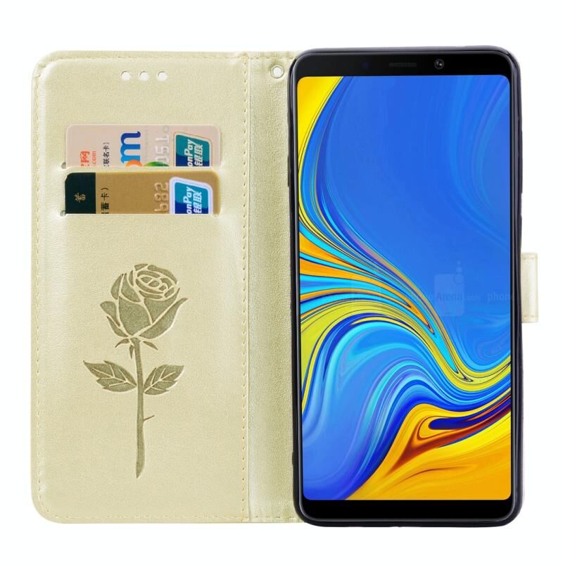 Rose Embossed Horizontal Flip PU Leather Case for Samsung Galaxy A9 (2018) , με θήκη για κάρτες & υποδοχές & πορτοφόλι (χρυσό)
