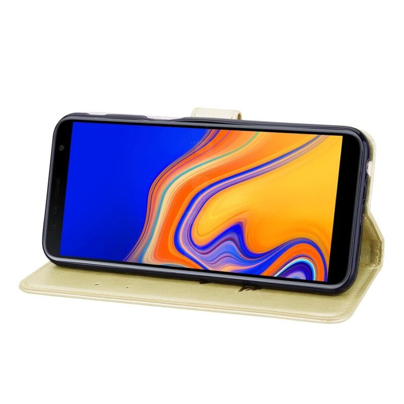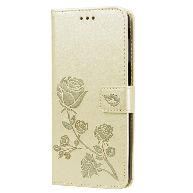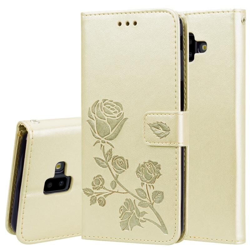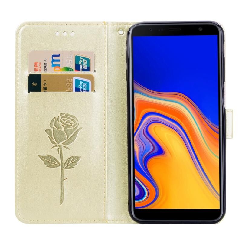 Rose Embossed Horizontal Flip PU Leather Case for Samsung Galaxy J6 Plus, με θήκη για κάρτες & υποδοχές & πορτοφόλι (Χρυσό)
