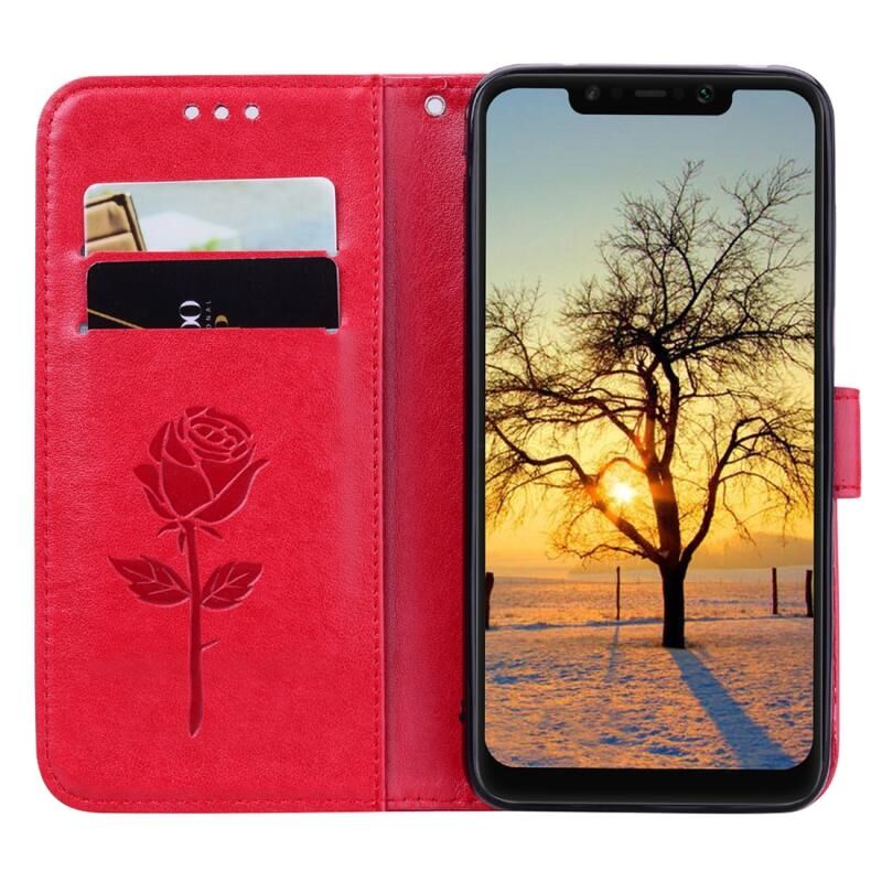 Rose Embossed Horizontal Flip PU Leather Case for Xiaomi Pocophone F1 , με θήκη & υποδοχές για κάρτες & πορτοφόλι (κόκκινο)
