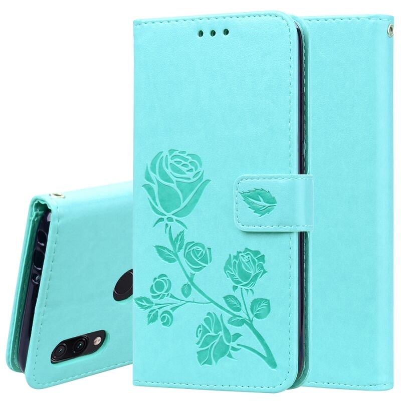 Rose Embossed Horizontal Flip PU Leather Case for Xiaomi Redmi 7, με θήκη & υποδοχές για κάρτες & πορτοφόλι (Πράσινο)