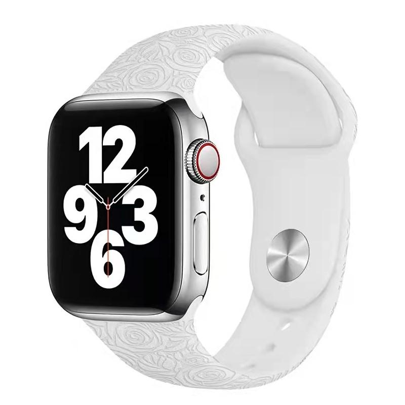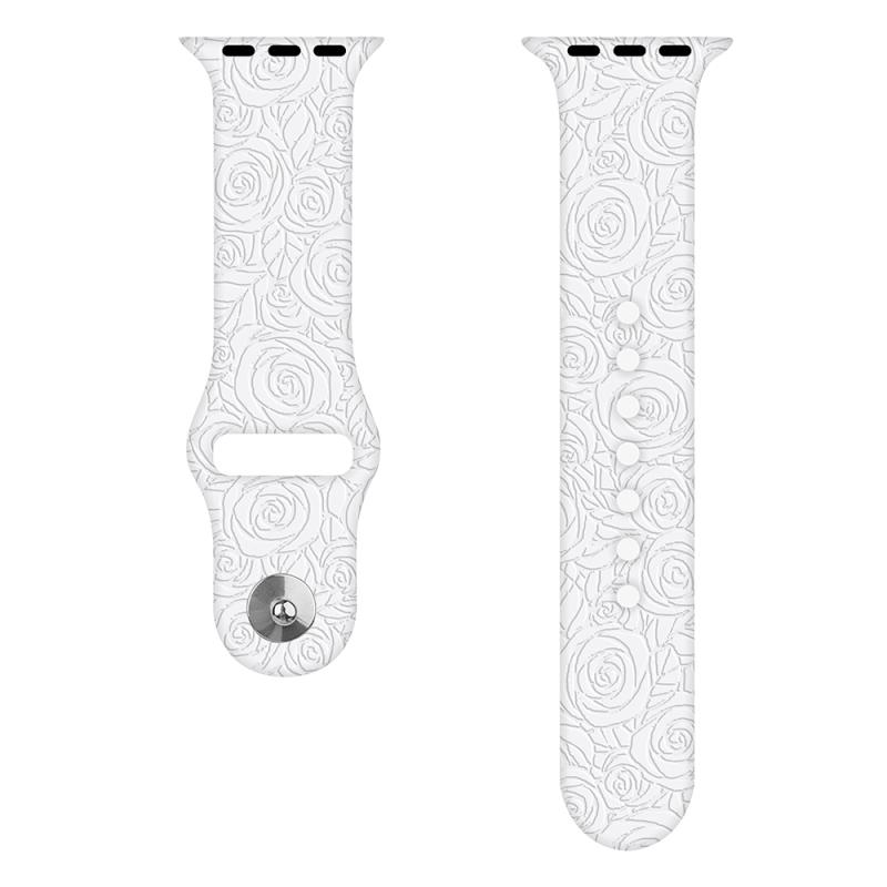 Rose Embossing Silicone Watch Band For Apple Watch Series 9&8&7 41mm / SE 3&SE 2&6&SE&5&4 40mm / 3&2&1 38mm(White)