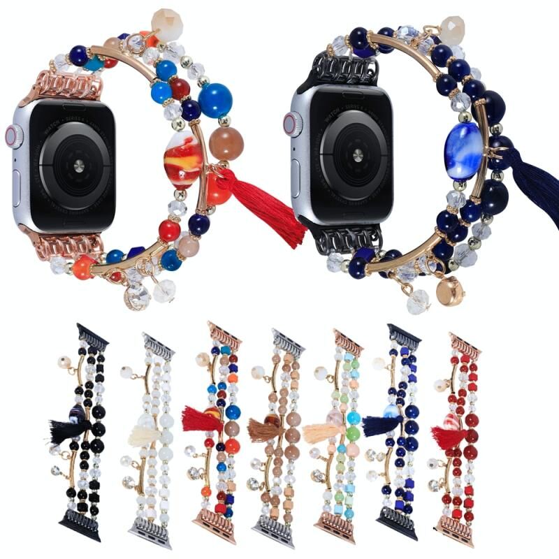 Λουρί ρολογιού αλυσίδας με στρογγυλές χάντρες για Apple Watch Series 9&8&7 41mm / SE 3&SE 2&6&SE&5&4 40mm / 3&2&1 38mm (Ανοιχτό καφέ)