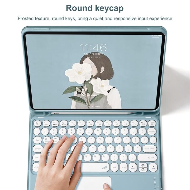 Θήκη με πληκτρολόγιο Bluetooth και δερμάτινη επένδυση με υποδοχή για στυλό & touchpad για Samsung Galaxy Tab S7 (Μπλε)