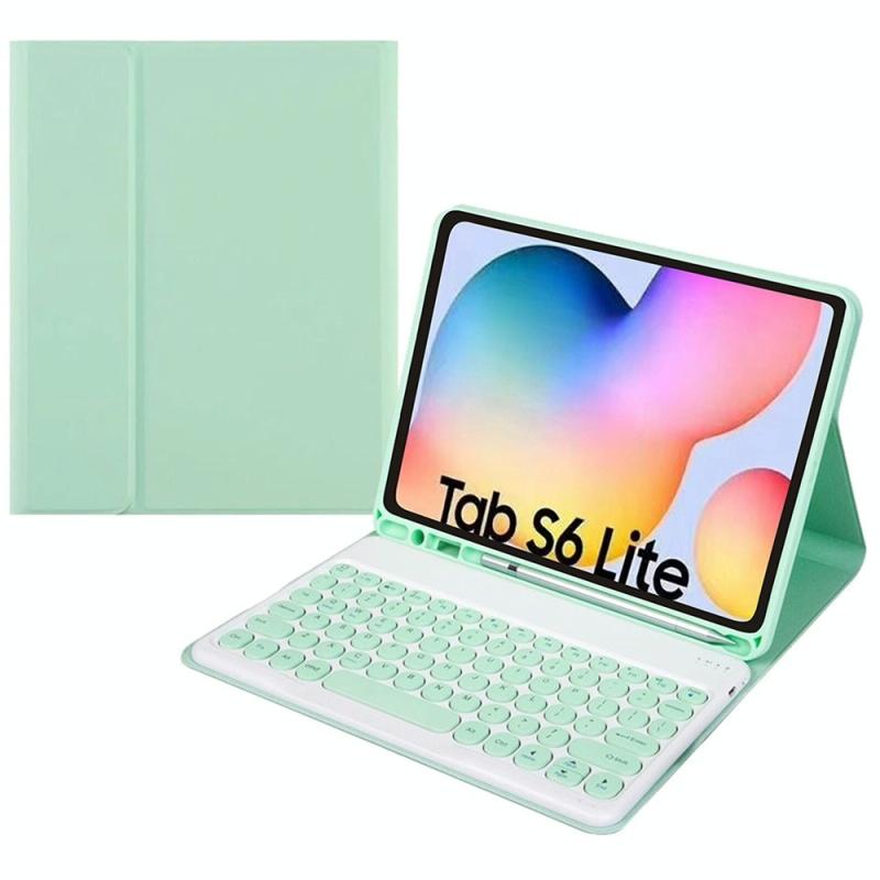 Θήκη δερμάτινου πληκτρολογίου Bluetooth με στρογγυλό καπάκι και υποδοχή για στυλό, χωρίς touchpad για Samsung Galaxy Tab A7 10.4 2020 (Πράσινο+Πράσινο Πληκτρολόγιο)