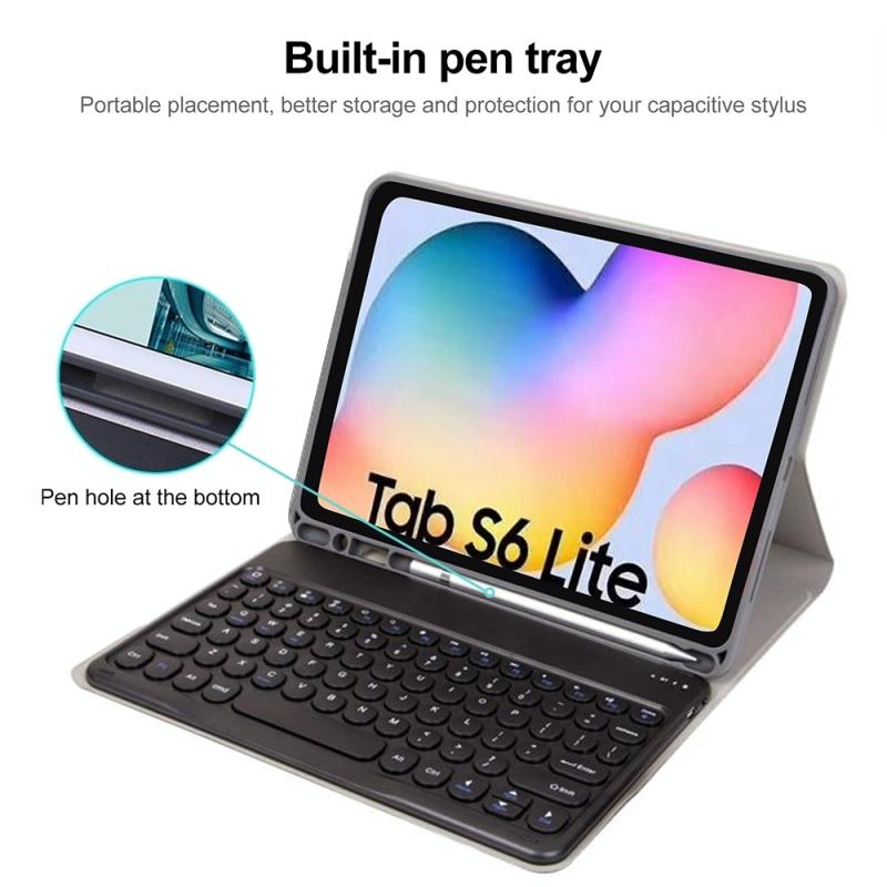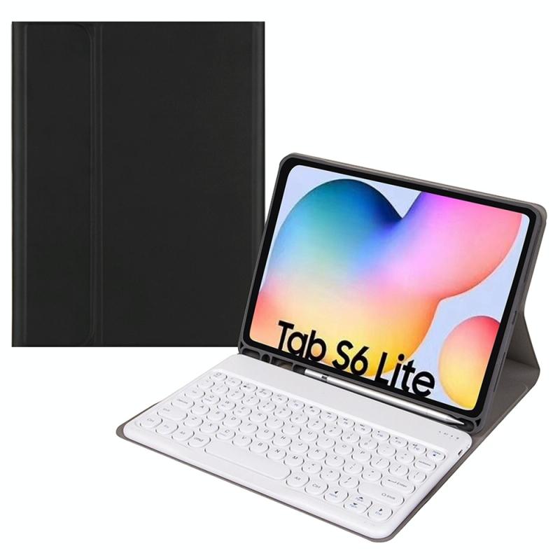 Θήκη δερμάτινου πληκτρολογίου Bluetooth με στρογγυλό καπάκι και υποδοχή για στυλό, χωρίς touchpad για Samsung Galaxy Tab S7 (Μαύρο + Λευκό Πληκτρολόγιο)