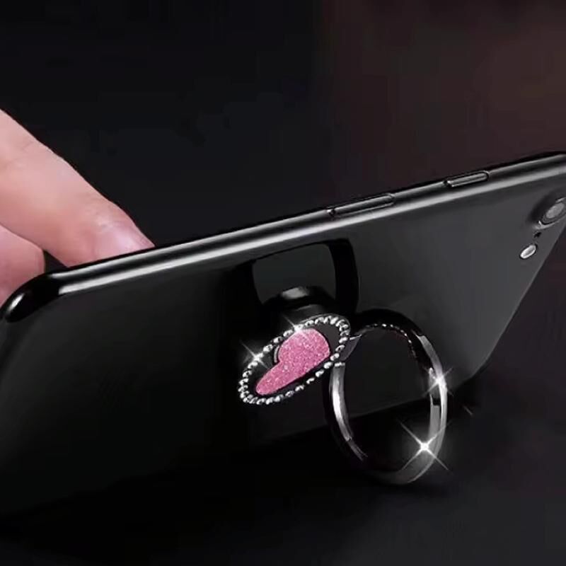 Δαχτυλίδι τηλεφώνου με βάση από μέταλλο σε σχήμα καρδιάς με γκλίτερ (Χρυσό)