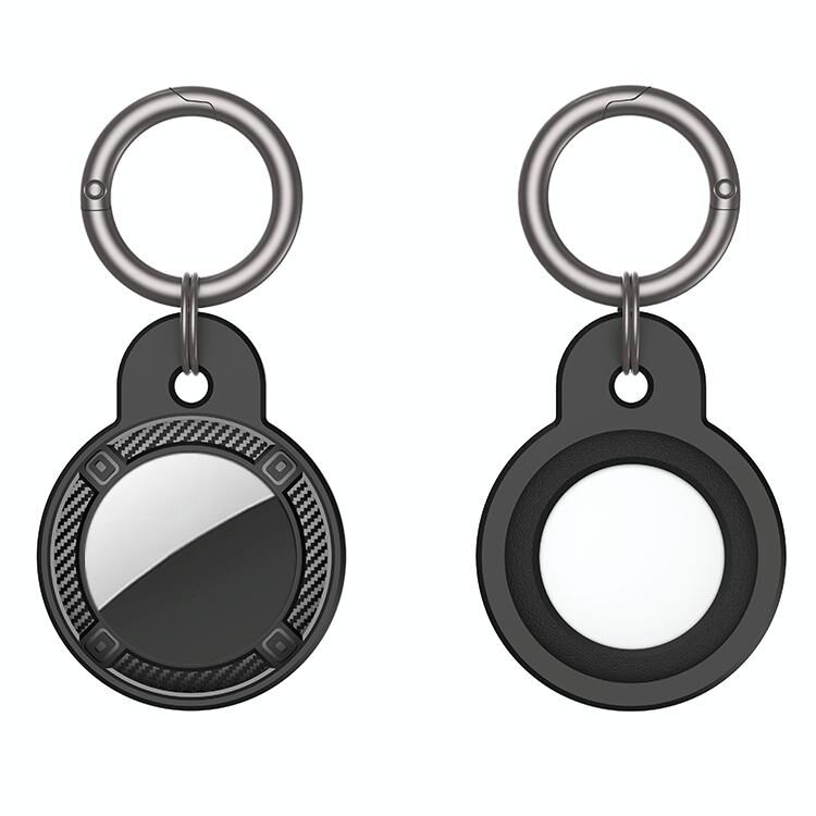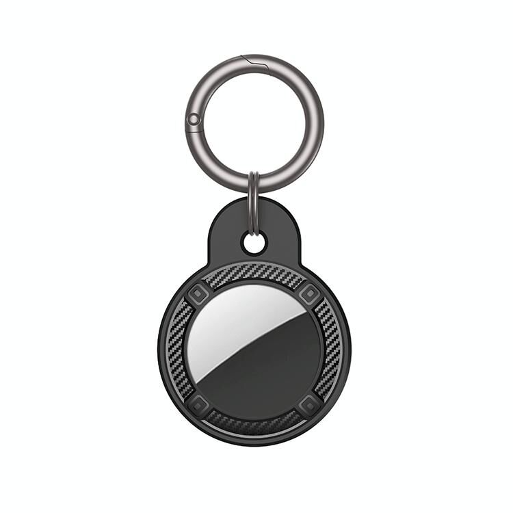 Round Shape Carbon Fiber Anti-fall Case with Keychain Ring for AirTag(Black)