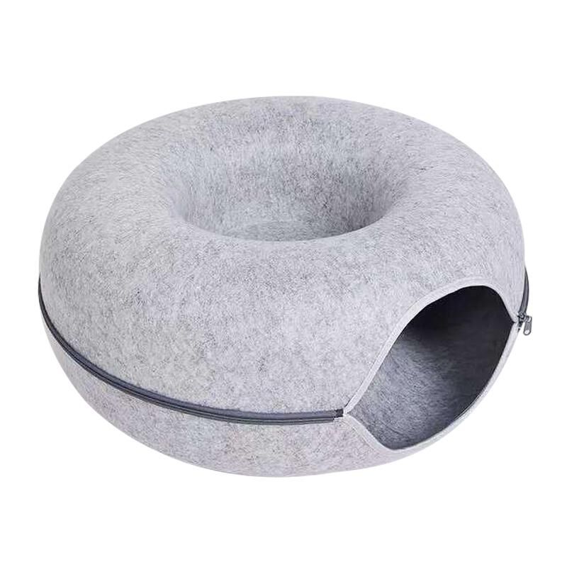Στρογγυλό μαλλί τσόχα γάτας άμμος γάτας σήραγγα γάτας, μέγεθος: 60x60x27cm (ανοιχτό γκρι)