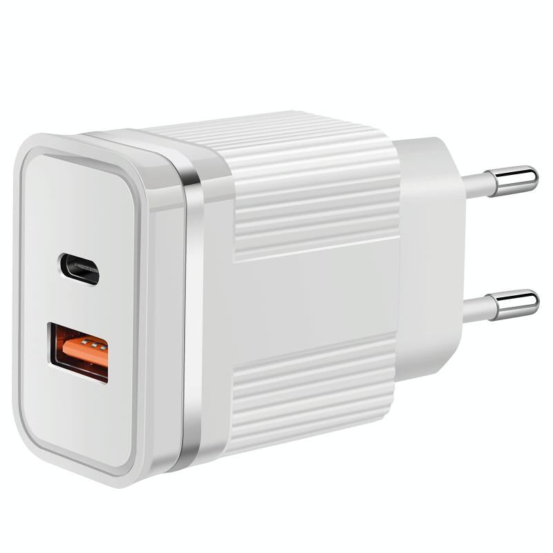 RSY USB + USB-C / Type-C Dual Ports Fast Charging Travel Charger, EU Plug(White)