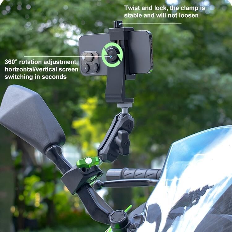 3. Ο διπλοκεφαλός σφιγκτήρας υποστηρίζει τιμόνια, διασταυρούμενες μπάρες, μπαστούνια selfie κ.λπ. με διάμετρο 22-38mm.