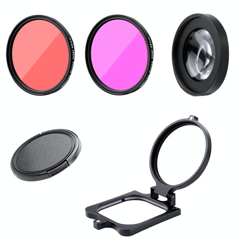 - Κόκκινο φίλτρο: Το κόκκινο φίλτρο μπορεί να χρησιμοποιηθεί γύρω στο μεσημέρι (άμεσο ηλιακό φως στην επιφάνεια του νερού) σε βάθος νερού 10-20 μέτρων, ο κύριος σκοπός είναι να μειωθεί το κόκκινο που απορροφάται από το νερό, να βελτιωθεί αποτελεσματικά το μπλε φαινόμενο της υποβρύχιας λήψης, να αποκατασταθεί η ισορροπία των χρωμάτων, να αποφευχθεί η λήψη εικόνων που είναι πολύ μπλε ή πολύ πράσινες.