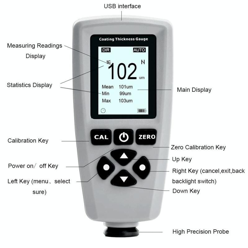 4. Units:Um, mil; Accuracy: +/- (3% of readings+2um)