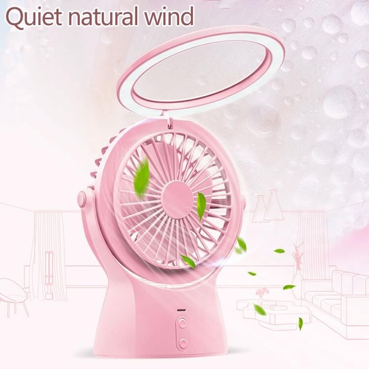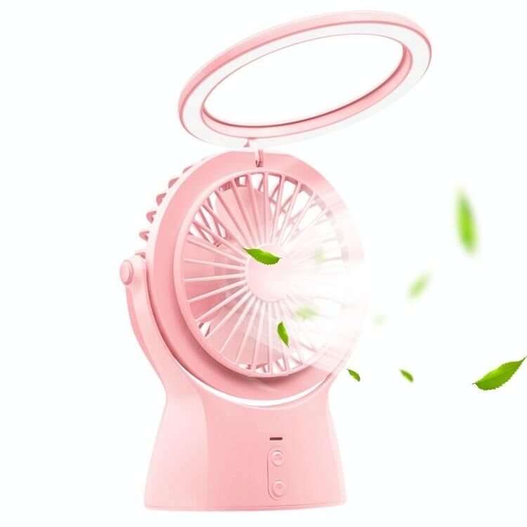 S1 Multi-function Portable USB Charging Mute Desktop Electric Fan Table Lamp, with 3 Speed Control (Pink)
