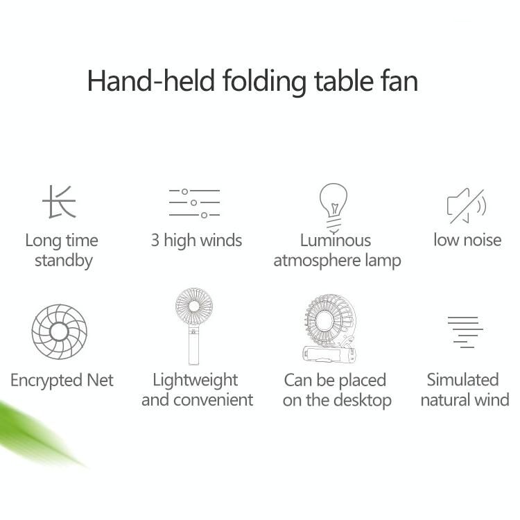 S2 Portable Foldable Handheld Electric Fan, with 3 Speed Control & Night Light (Sky Blue)