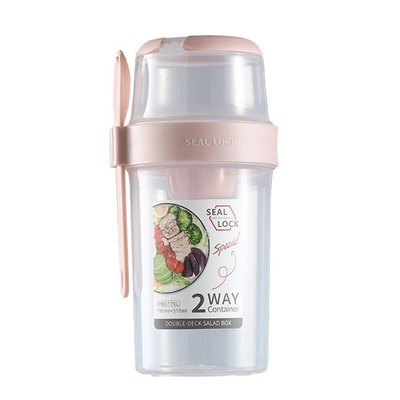 Σαλάτα γεύμα Shaker Cup φορητό δοχείο φρούτων και λαχανικών με πιρούνι Dressing Box, μέγεθος: Μέγεθος: Μεγάλο ροζ