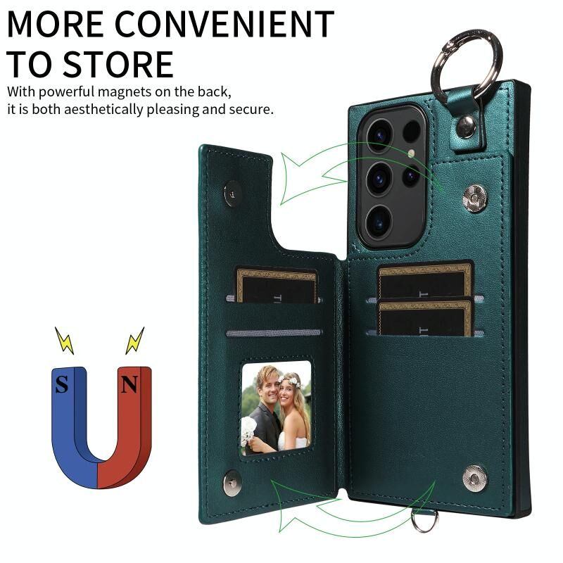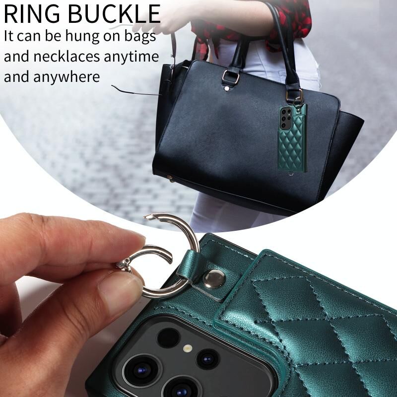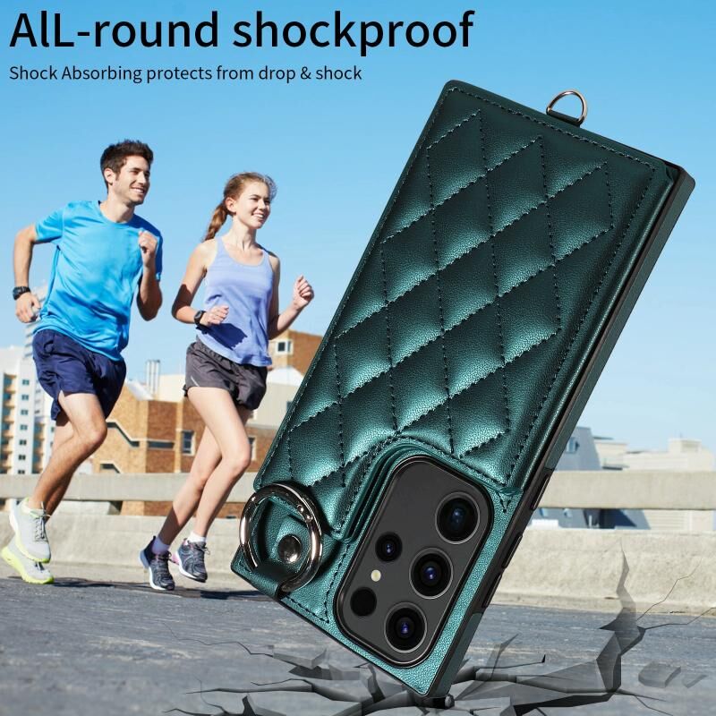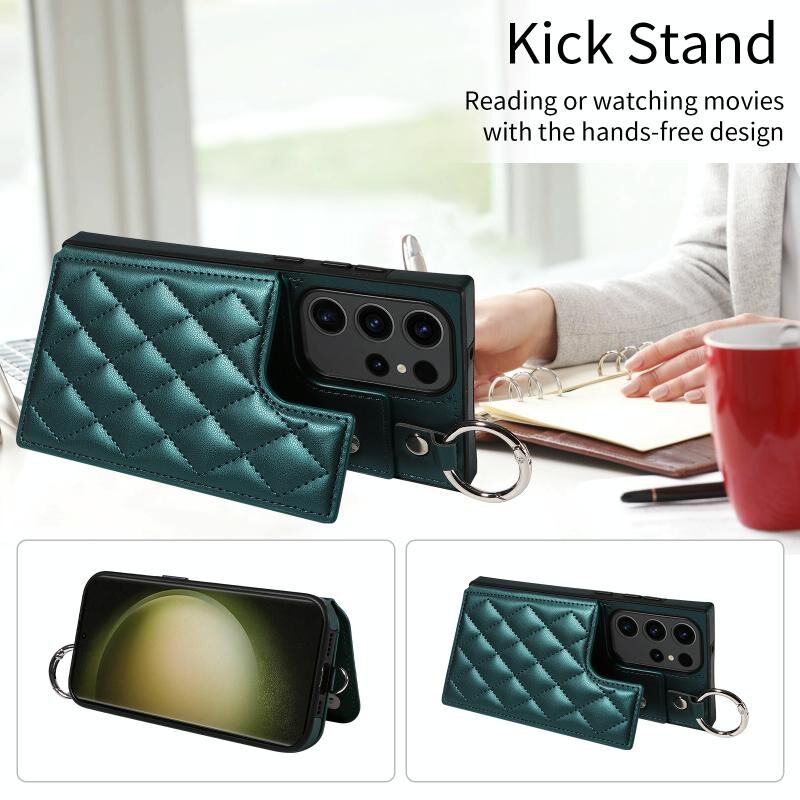 Samsung Galaxy S23 Ultra 5G Rhombic υφή κάρτα τσάντα υπόθεση τηλεφώνου με σύντομο κορδόνι (πράσινο)
