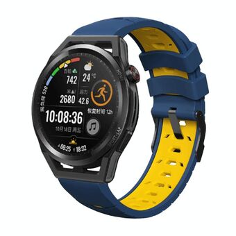 For Samsung Galaxy Watch 46mm Trapezoidal Three-row Hole Silicone Watch Band(Midnight Blue Yellow)