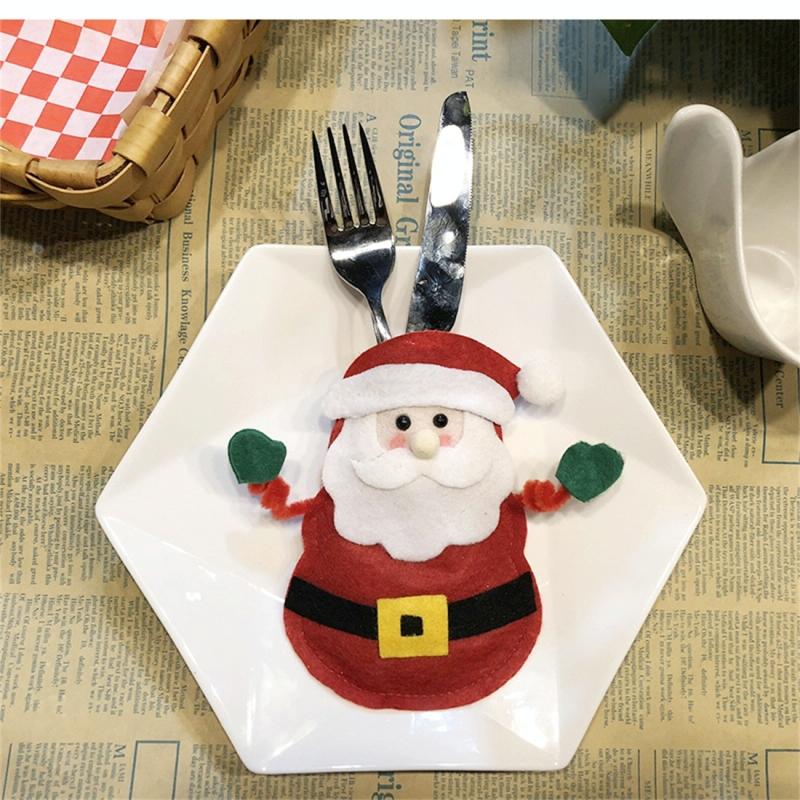 Santa Claus Pattern Tableware Knife Fork Pocket Cover Bag Christmas Decoration
