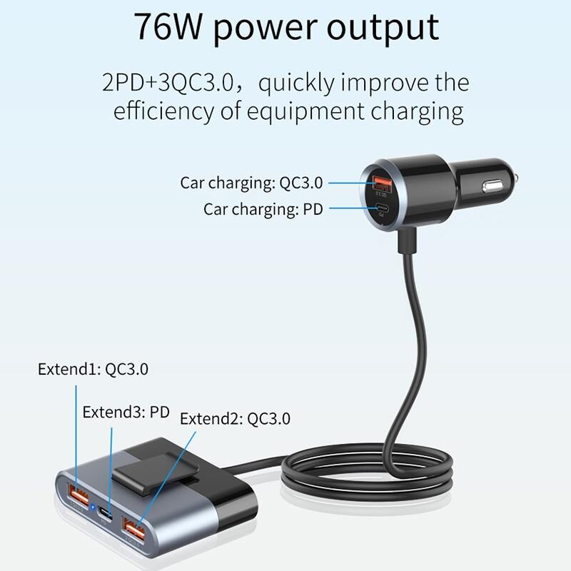 SC03 76W έξοδος PD / QC3.0 γρήγορη φόρτιση εκτεταμένου φορτιστή αυτοκινήτου