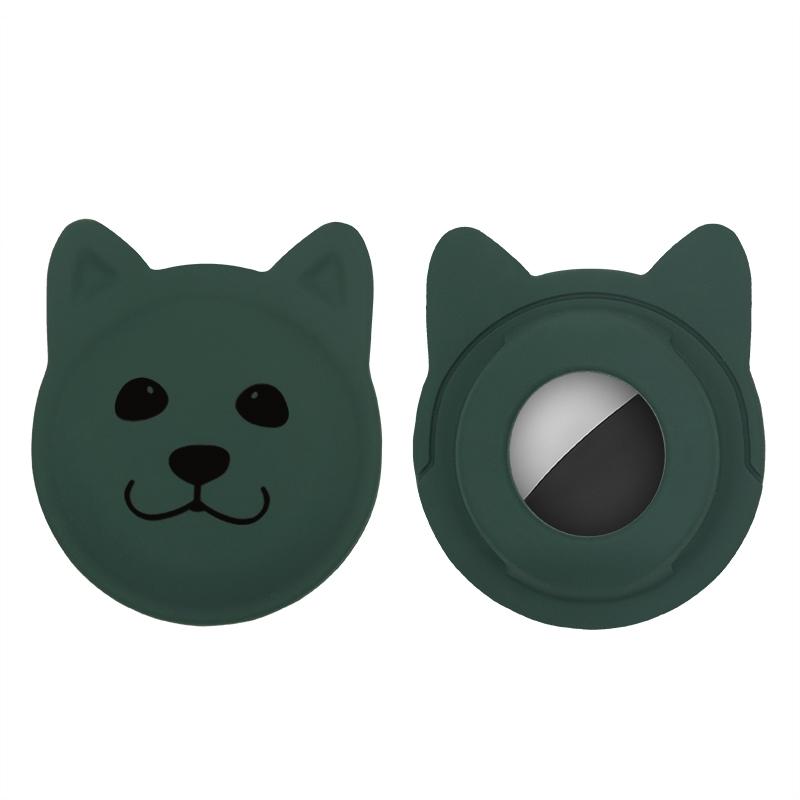 Serious Face Cute Cartoon Pet Collar Anti-lost Tracker Silicone Case For AirTag(Dark Green) (Mutural)