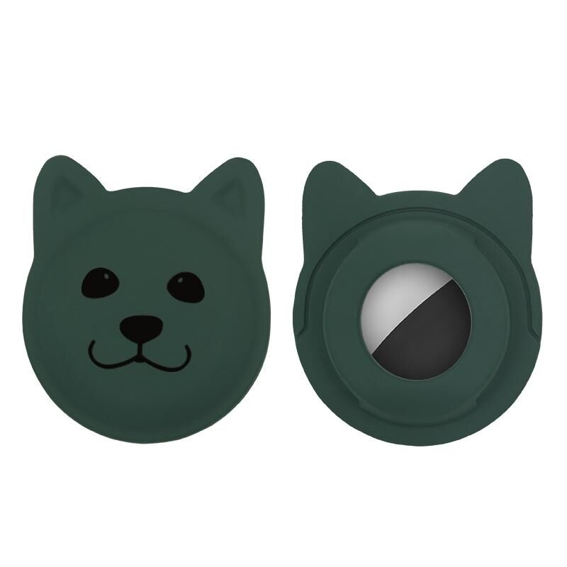 Σοβαρό Πρόσωπο Χαριτωμένο Καρτούν Κολάρο Κατοικίδιου Ζώου Αντιχαμένο Εντοπιστή Σιλικόνης για AirTag (Σκούρο Πράσινο) (Mutural)