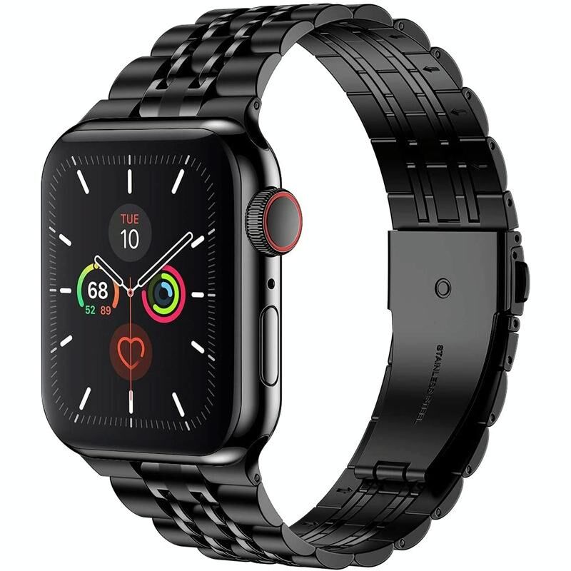 Λουρί ρολογιού από ανοξείδωτο ατσάλι με επτά χάντρες, εξαιρετικά λεπτό, για Apple Watch Series 9&8&7 41mm / SE 3&SE 2&6&SE&5&4 40mm / 3&2&1 38mm (Μαύρο)