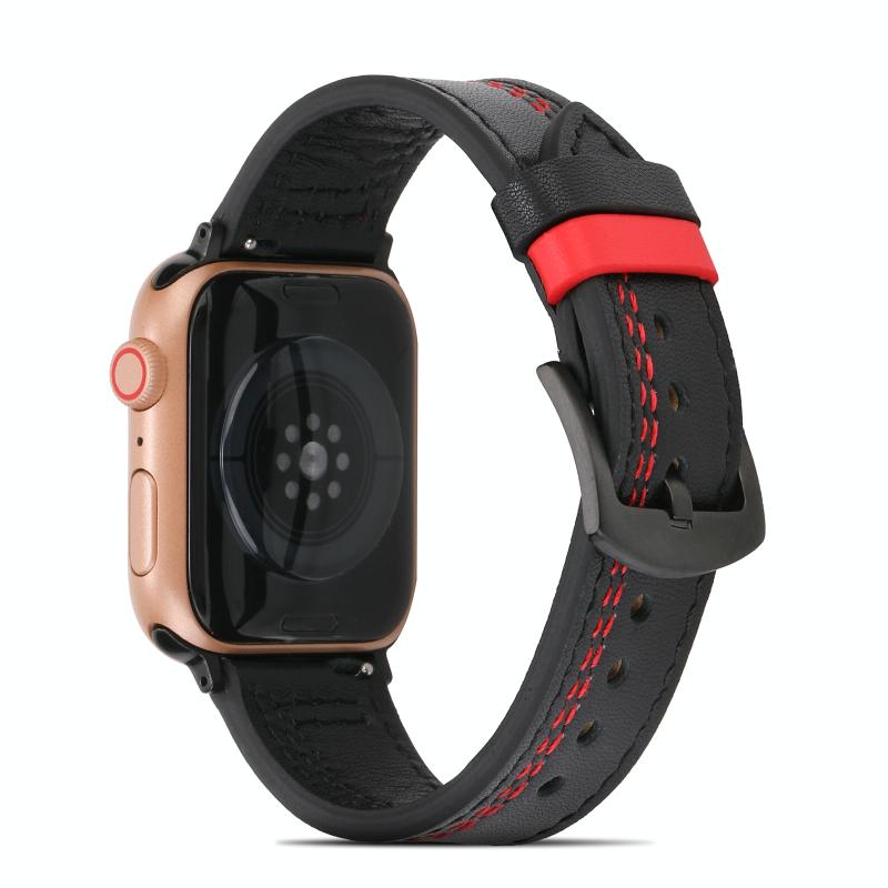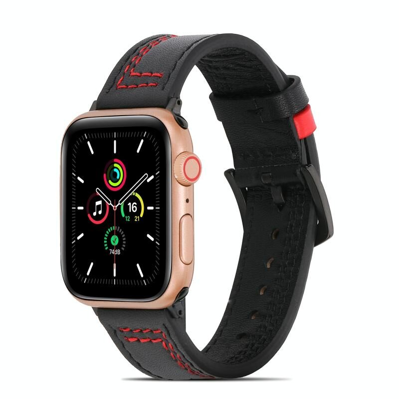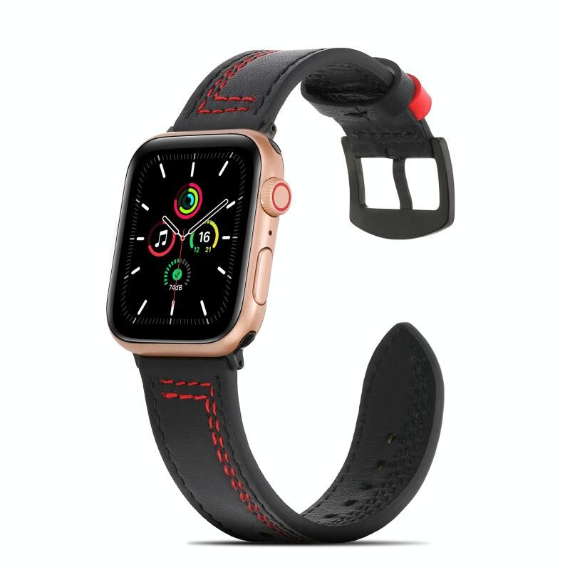 Λουρί ρολογιού από δέρμα ραφής για Apple Watch Ultra 49mm & Watch Ultra 2 49mm / Series 9 & 8 & 7 45mm / SE 3 & SE 2 & 6 & SE & 5 & 4 44mm / 3 & 2 & 1 42mm (Μαύρο)
