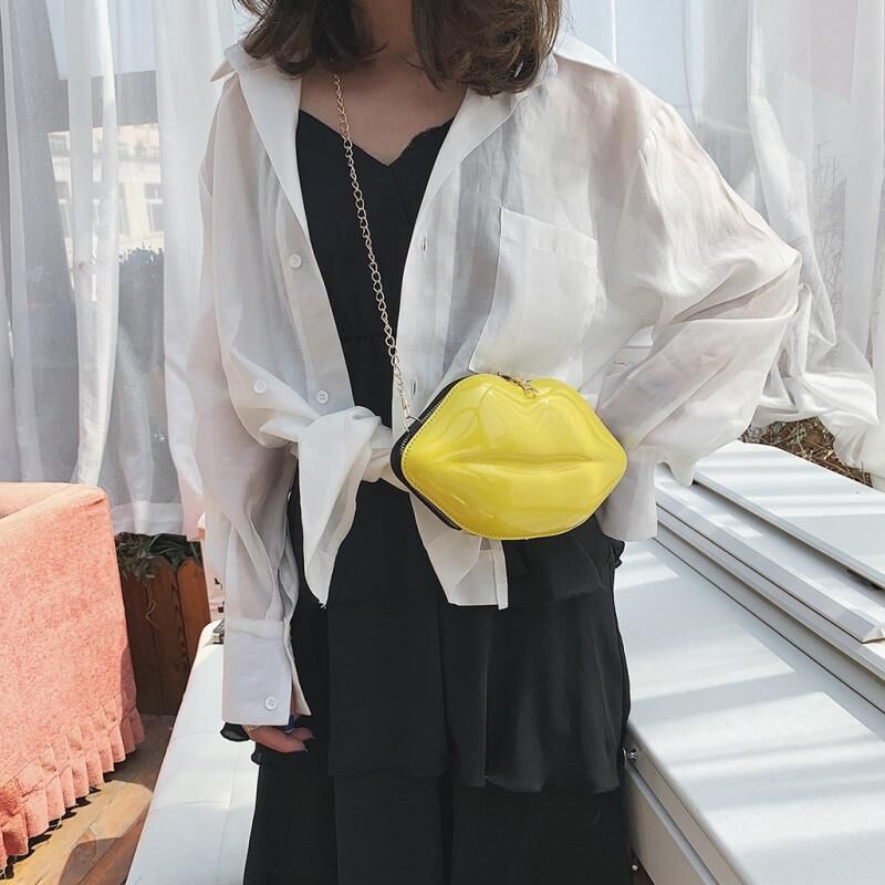Sexy Lips Style Fashion PU Ladies Clutch Bag Chain Purse Shoulder Bag Handbag Women Crossbody Mini Messenger Bag(Black)