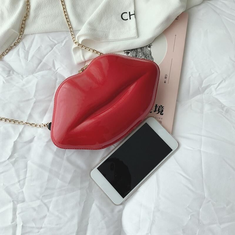 Sexy Lips Style Fashion PU Ladies Clutch Bag Chain Purse Shoulder Bag Handbag Women Crossbody Mini Messenger Bag(Yellow)