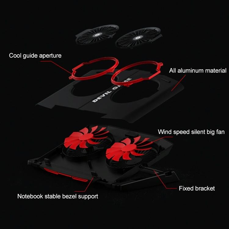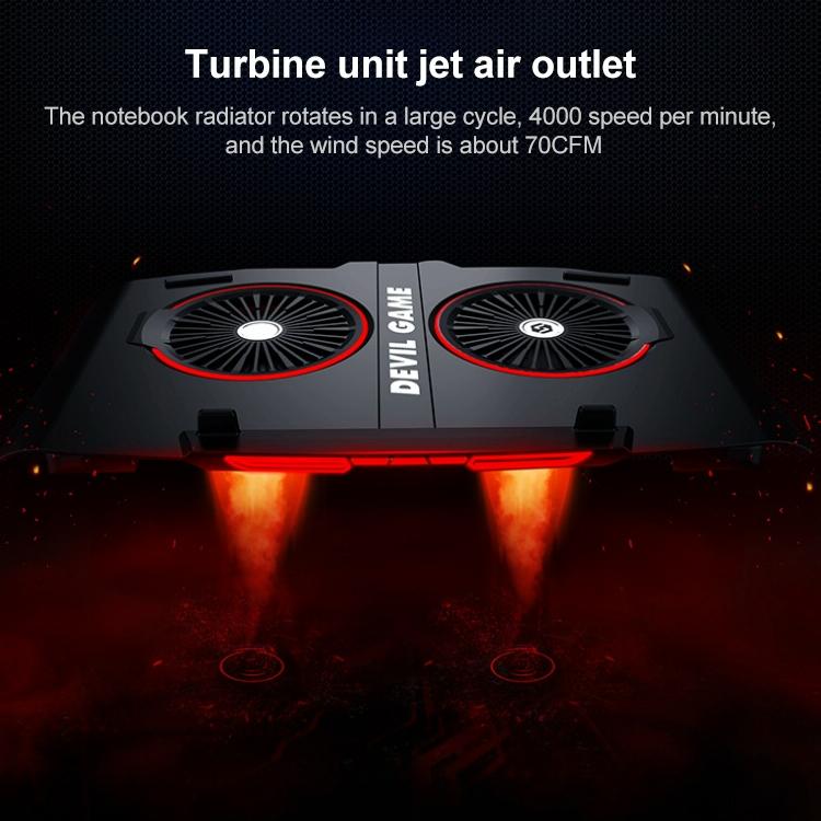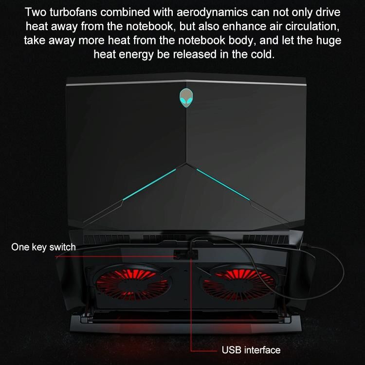SH-009SR Mute Dual-fan Laptop Radiator Four-speed Adjustable Computer Base for Laptops Under 17.3 inch (Red Light)