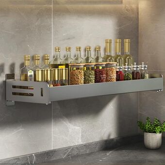 Wall Mounted Kitchen Spice Rack Carbon Steel Bathroom Storage Shelf Towel Rack 60cm