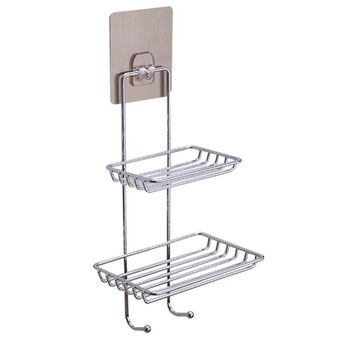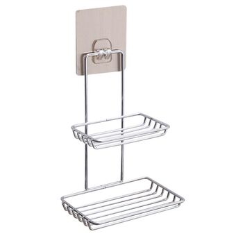 Δημιουργικό διπλό στρώμα από ανοξείδωτο χάλυβα σαπούνι Stand μη ίχνος μαγικό αυτοκόλλητο στυλ σαπούνι πιάτο μπάνιο ράφι