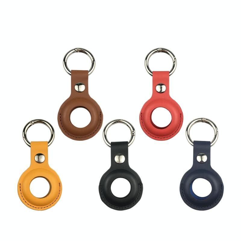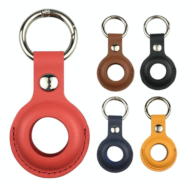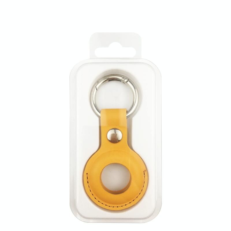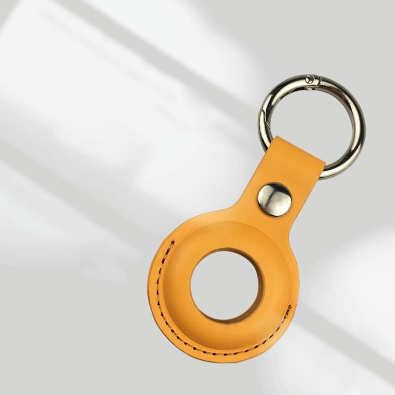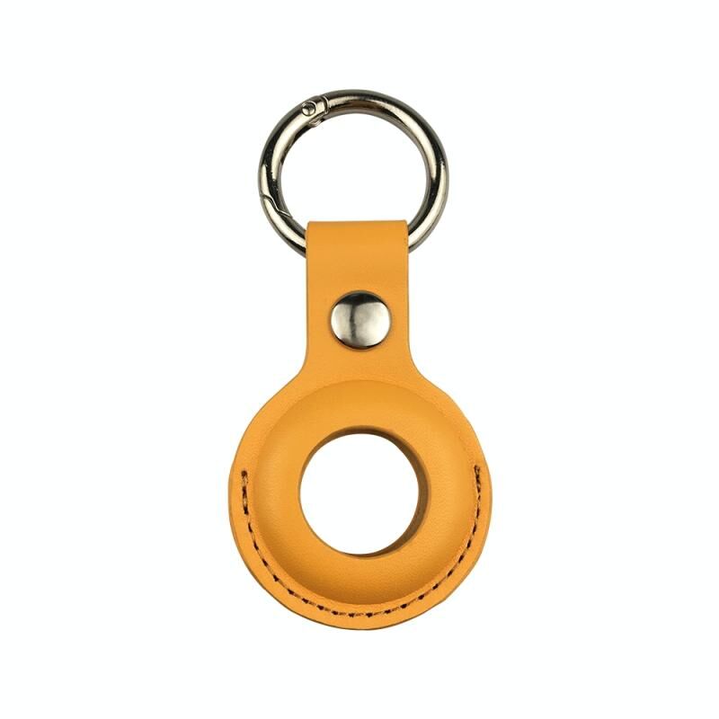 Shockproof Anti-scratch Leather Protective Case Cover Key Chain with Hang Loop For AirTag(Yellow)