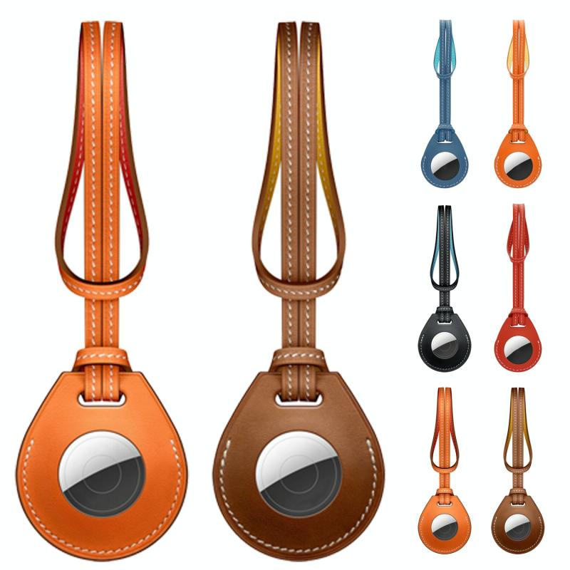 Shockproof Anti-scratch Leather Protective Case Cover with Hang Loop For AirTag, Style:Bag Decoration Accessories (Orange)