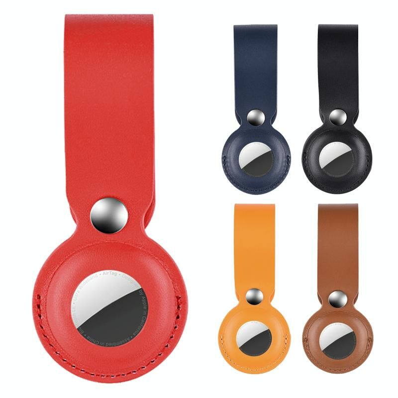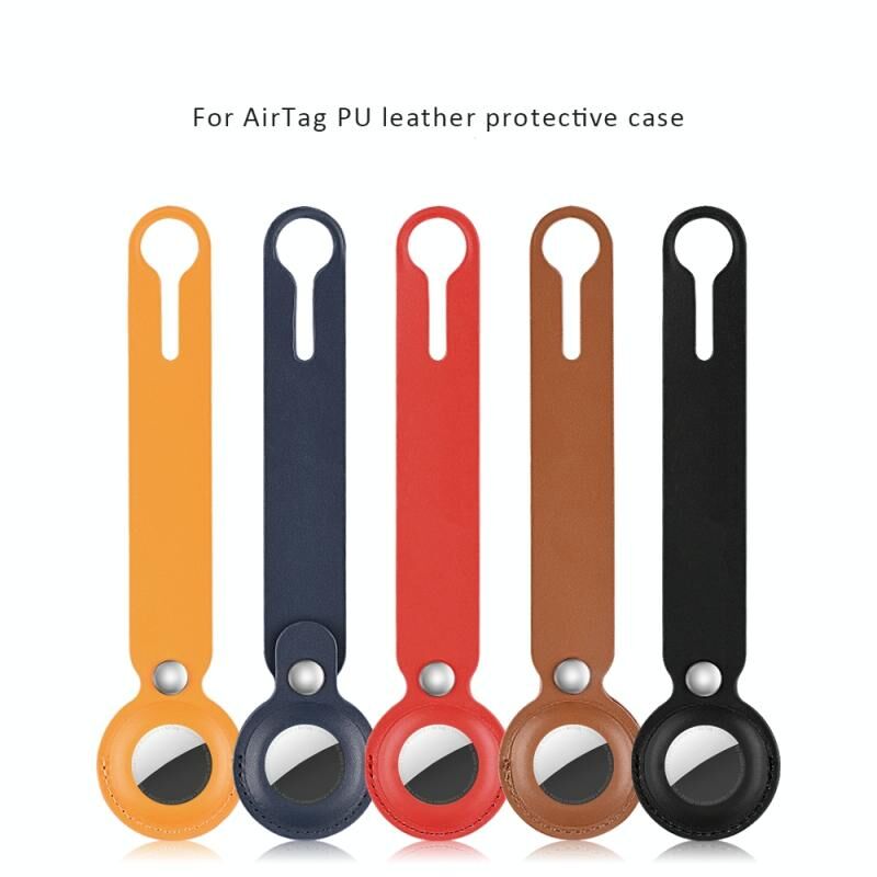 Shockproof Anti-scratch PU Leather Protective Case Cover Key Chain For AirTag(Brown)