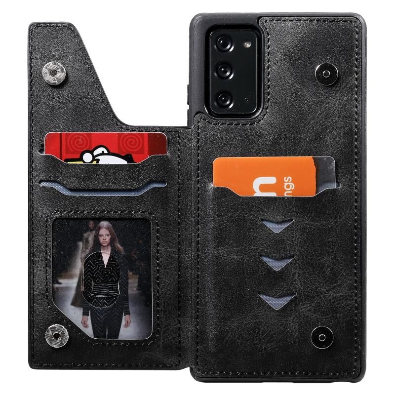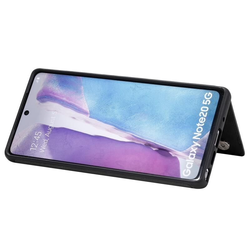 Αδιάβροχη θήκη με υφή μοσχαριού με θήκη & υποδοχές καρτών & πλαίσιο για Samsung Galaxy Note20(Μαύρο)
