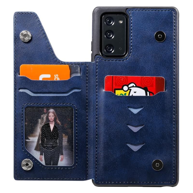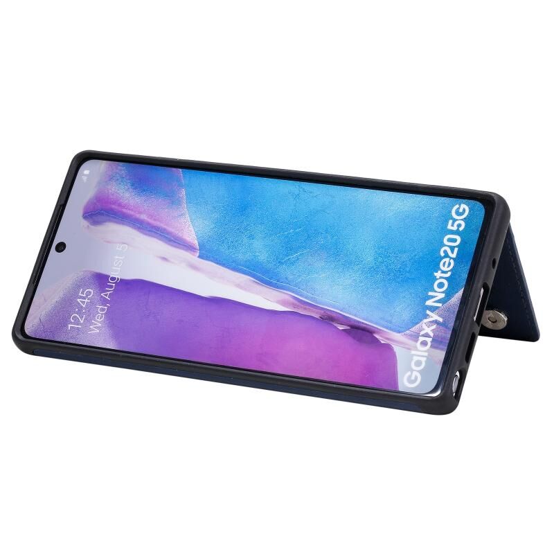 Αδιάβροχη θήκη με υφή μοσχαριού με θήκη & υποδοχές καρτών & πλαίσιο για Samsung Galaxy Note20(Blue)