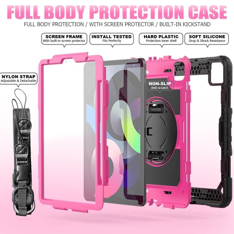 Ανθεκτική σε κρούσεις, πολύχρωμη θήκη προστασίας από σιλικόνη + PC με βάση στήριξης & λουρί ώμου & λουρί χειρός & υποδοχή στυλό για iPad Air 2022 / 2020 10.9 (Πορτοκαλί)