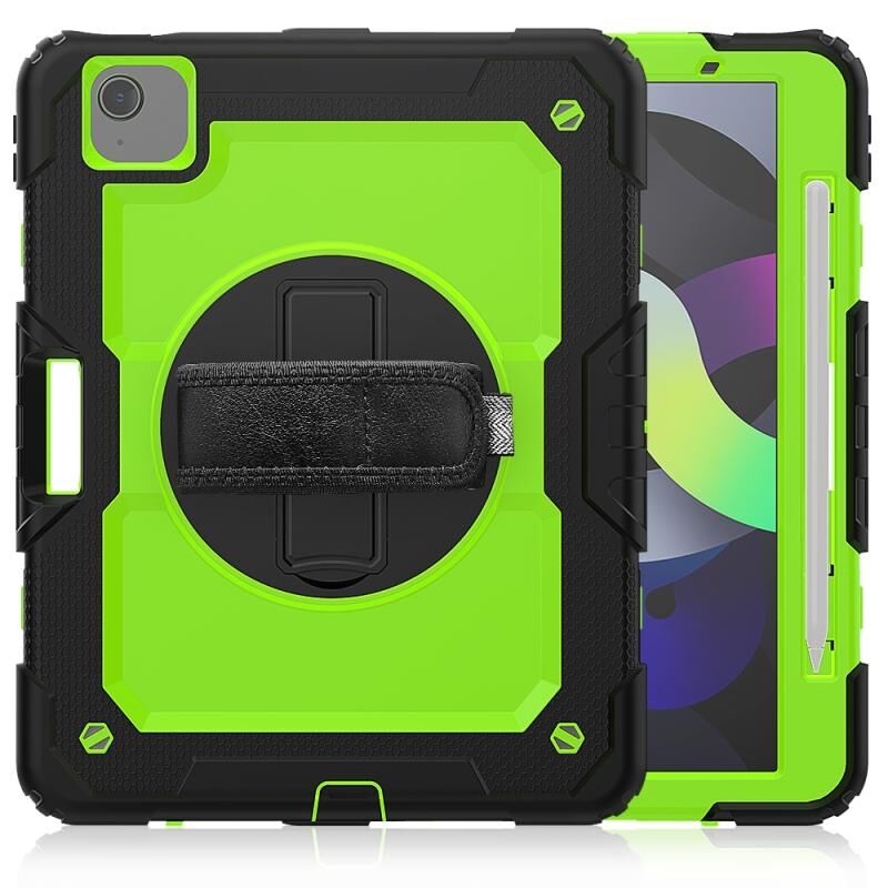 Ανθεκτική σε κρούσεις, πολύχρωμη θήκη προστασίας από σιλικόνη + PC με βάση στήριξης & λουρί ώμου & λουρί χειρός & υποδοχή στυλό για iPad Air 2022 / 2020 10.9 (Πορτοκαλί)