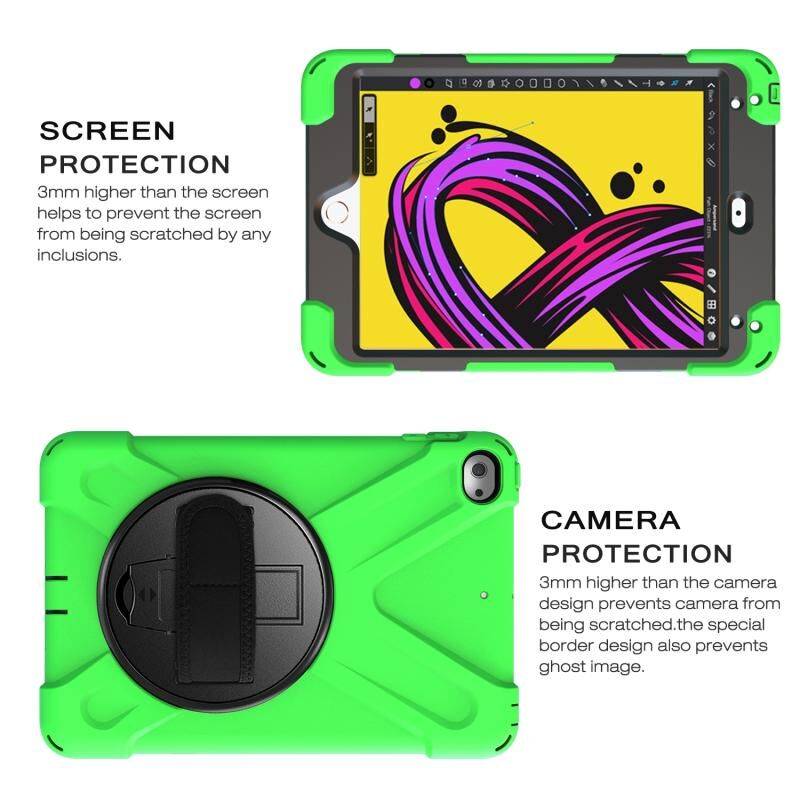 Ανθεκτική σε κρούσεις, πολύχρωμη θήκη προστασίας από σιλικόνη + PC με βάση στήριξης & λουρί ώμου & λουρί χειρός για iPad Mini 4 / Mini (2019) (Πορτοκαλί)