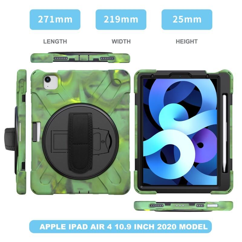 Ανθεκτική σε κρούσεις, πολύχρωμη θήκη προστασίας από σιλικόνη + PC με βάση στήριξης & λουρί ώμου & λουρί χειρός για iPad Pro 11 2021 / 2020 / 2018 / 2022 / Air 4 2020 (Καμουφλάζ)