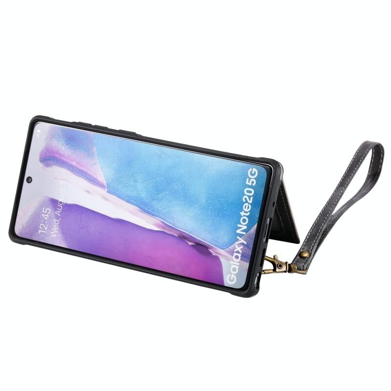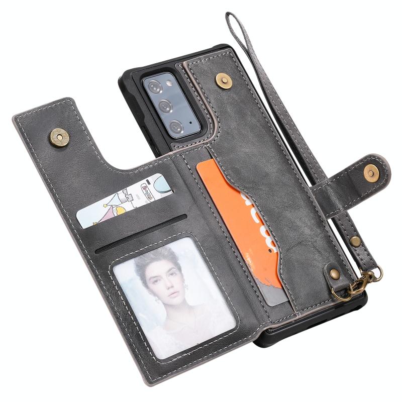 Shockproof Horizontal Flip Protective Case with Holder & Card Slots & Wallet & Photo Frame & Short Lanyard For Samsung Galaxy Note20(Grey)