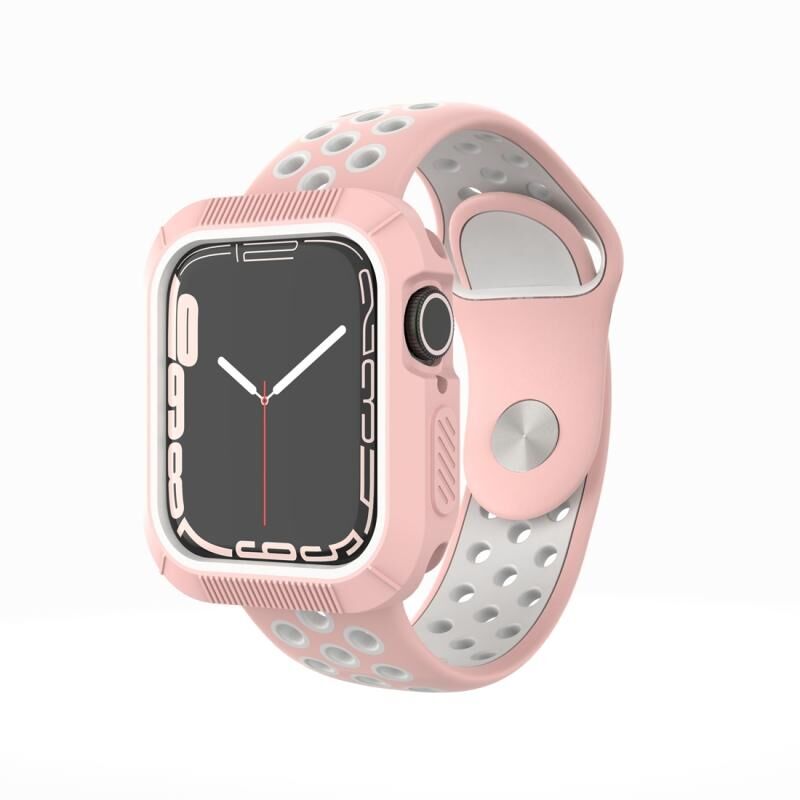 Shockproof PC Protective Case For Apple Watch Series 8 / 7 41mm / 6&SE&5&4 40mm / 3&2&1 38mm(Pink + White)
