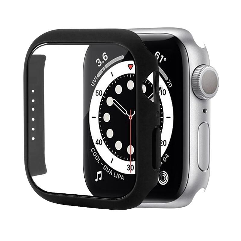 Shockproof PC Protective Case with Tempered Glass Film For Apple Watch Series 8 / 7 45mm(Black)